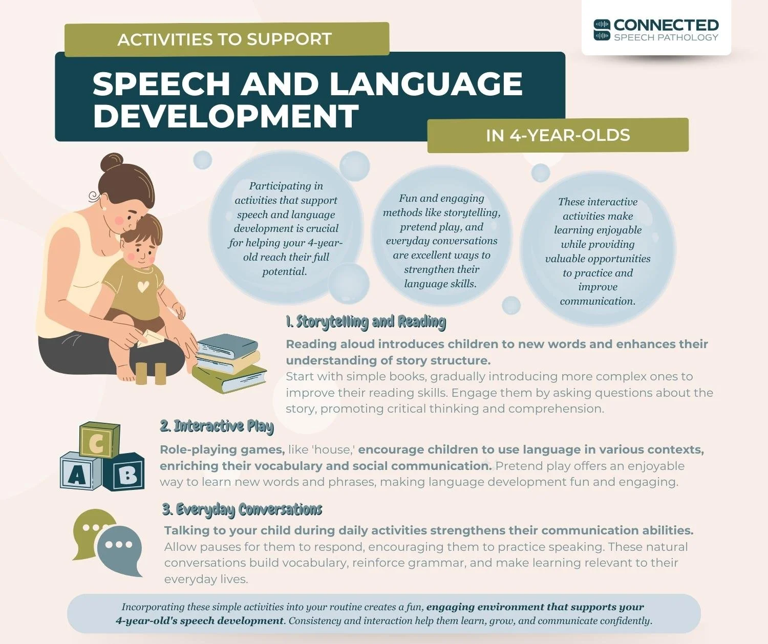 Connected Speech Pathology supports parents and children through the critical developmental stage of early childhood speech milestones.