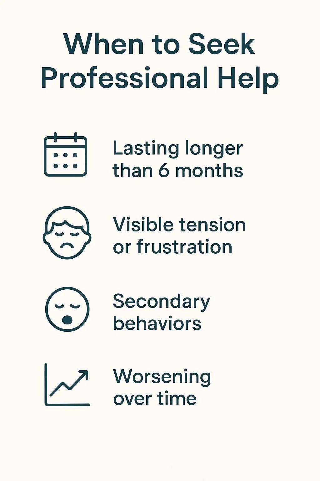 • Persistence beyond age four: Stuttering that lasts more than twelve months or continues past age four is more likely to need support.