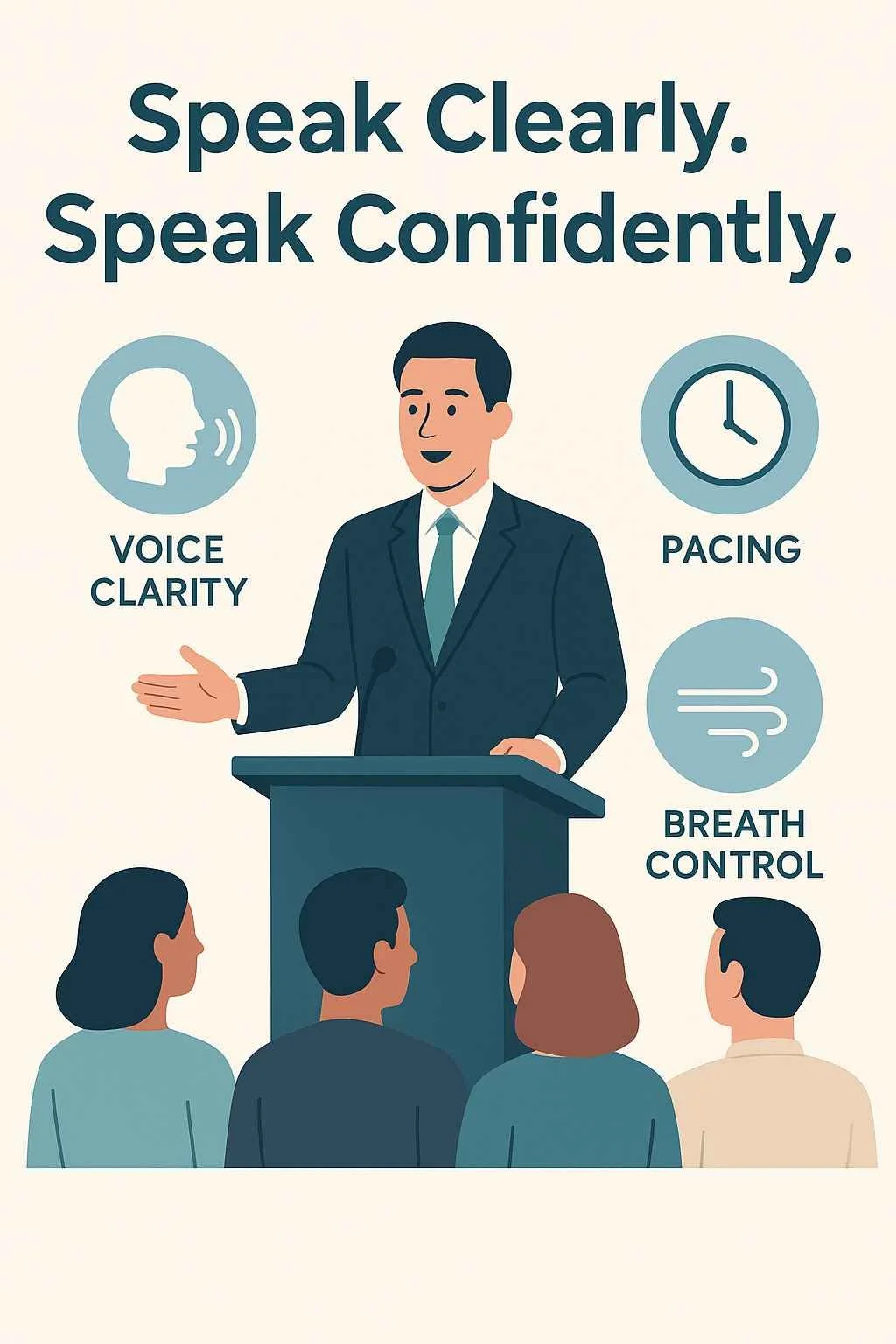 Clients learn how to speak with clarity, project their voice, and practice techniques that improve both everyday conversation and professional communication.