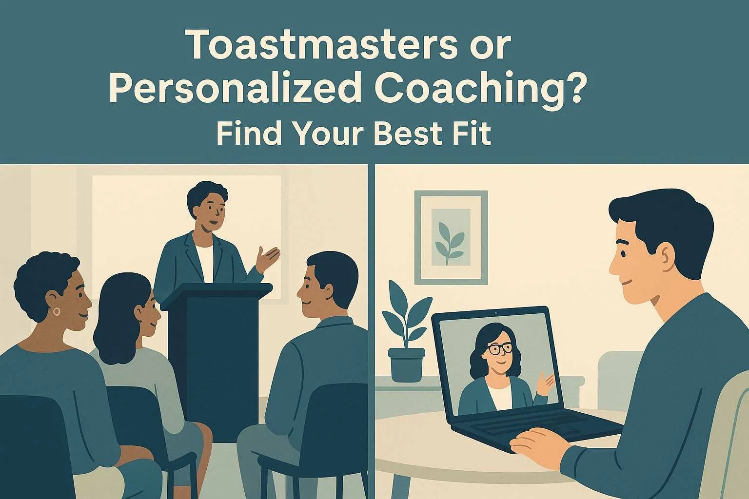 Some people need privacy, flexibility, and targeted support that Toastmasters and similar programs don’t provide. With personalized coaching, you build confidence, strengthen your communication, and learn in a way that fits your life.