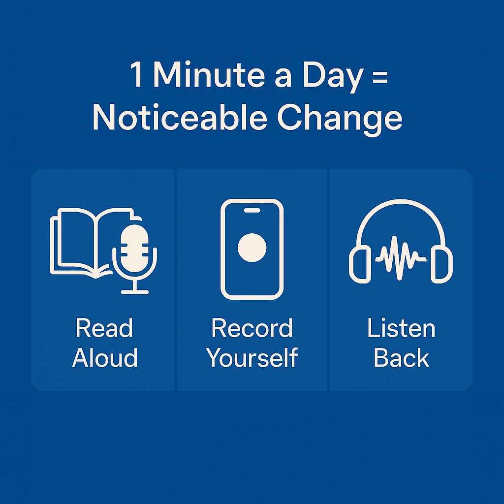Read out loud for one minute a day with the goal of increasing vocal variety and avoiding flat patterns. Recording yourself gives clear feedback about where your sound becomes dull or one-note.